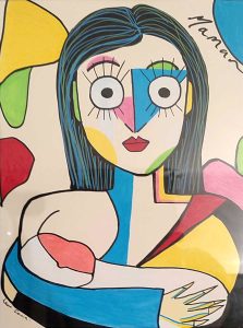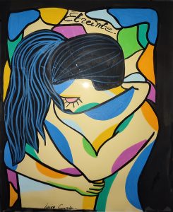 Aujourd’hui, je cours les vernissages et mes toiles plaisent à un public large et nombreux. Des commandes pleuvent et je prends de plus en plus de plaisir à échanger avec un tel ou une telle sur ce personnage ou sur cette superposition de couleurs. Chacun peut y voir ce qu’il souhaite ou ce que son cœur et son âme lui exposent en premier, mais toutes et tous se rejoignent sur la joie que dégagent mes tableaux.