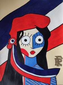 Plus tard, j’ai changé de style, sans doute pour aller à l’encontre de mon quotidien professionnel me donnant à voir et à côtoyer la misère de notre société et ses souffrances. Les couleurs sont devenues prépondérantes et des personnages aux grands yeux ouverts sont apparus naturellement. Je ne saurais expliquer pourquoi mes personnages sont ainsi, pourquoi ils diffèrent tant de mes premiers dessins et tableaux. Une envie, un besoin surtout d’exprimer la vie, la générosité et la gaîté, mais aussi un regard objectif sur le monde.